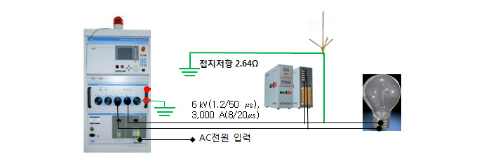 ³«·Ú¼­Áö ½ÃÇè¼³ºñ(Lightning surge simulation)·Î 6 §Ç(1.2/50 §Á), 3,000 A(8/20§Á)¸¦ eca3G¸¦ ¼³Ä¡Çϰí Àü¿ø¿¡ Àΰ¡ ÇÏ¿© ½ÃÇèÇÑ °á°ú Àü±¸´Â ÀüÇô ÆÄ¼Õ ¾È µÊ